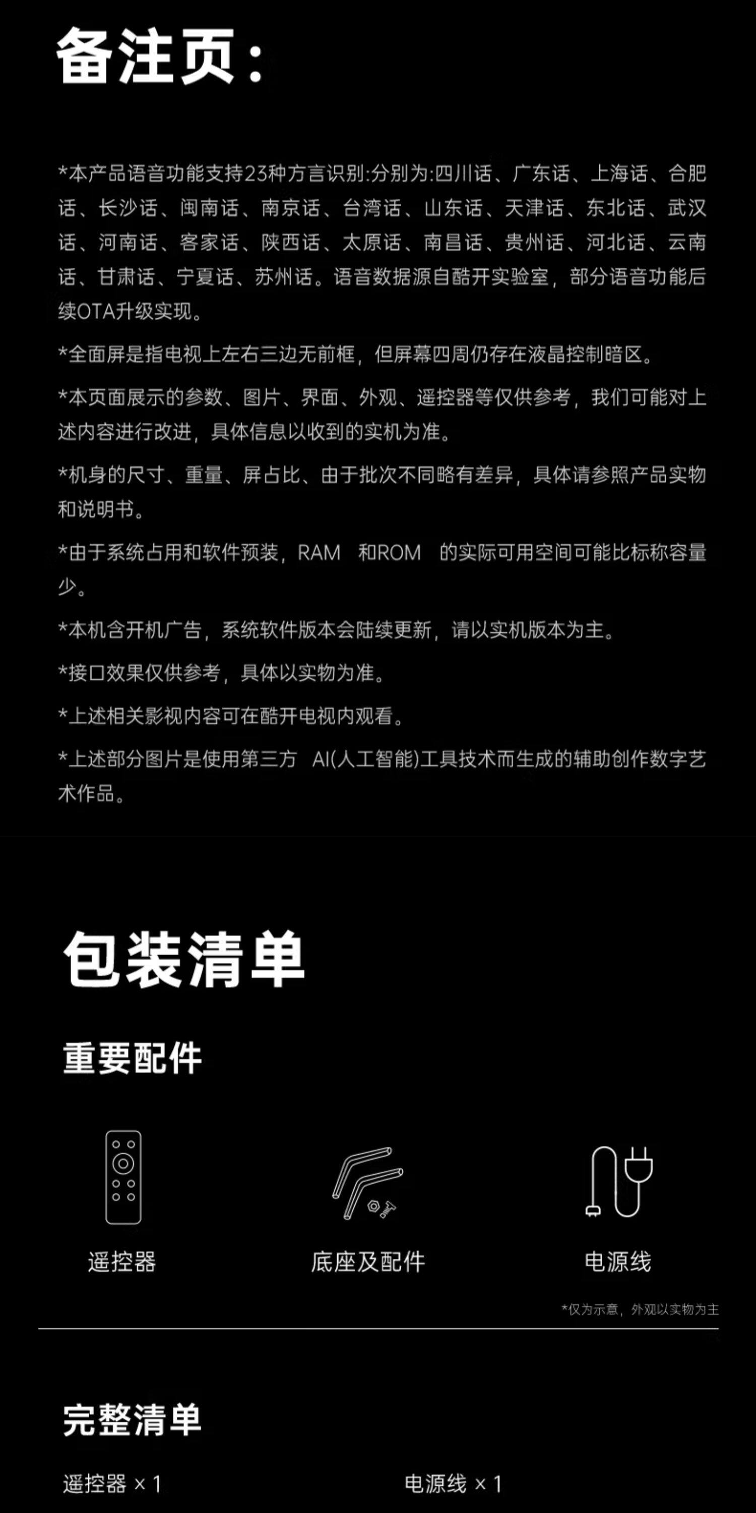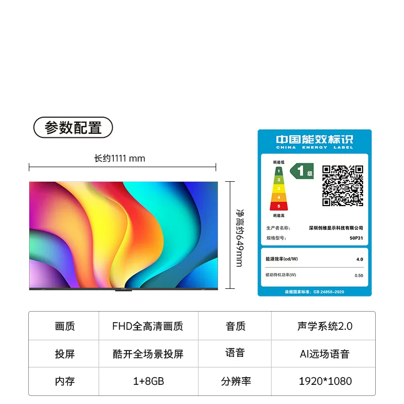 酷开电视 50P31 高清智能网络投屏电视 50英寸