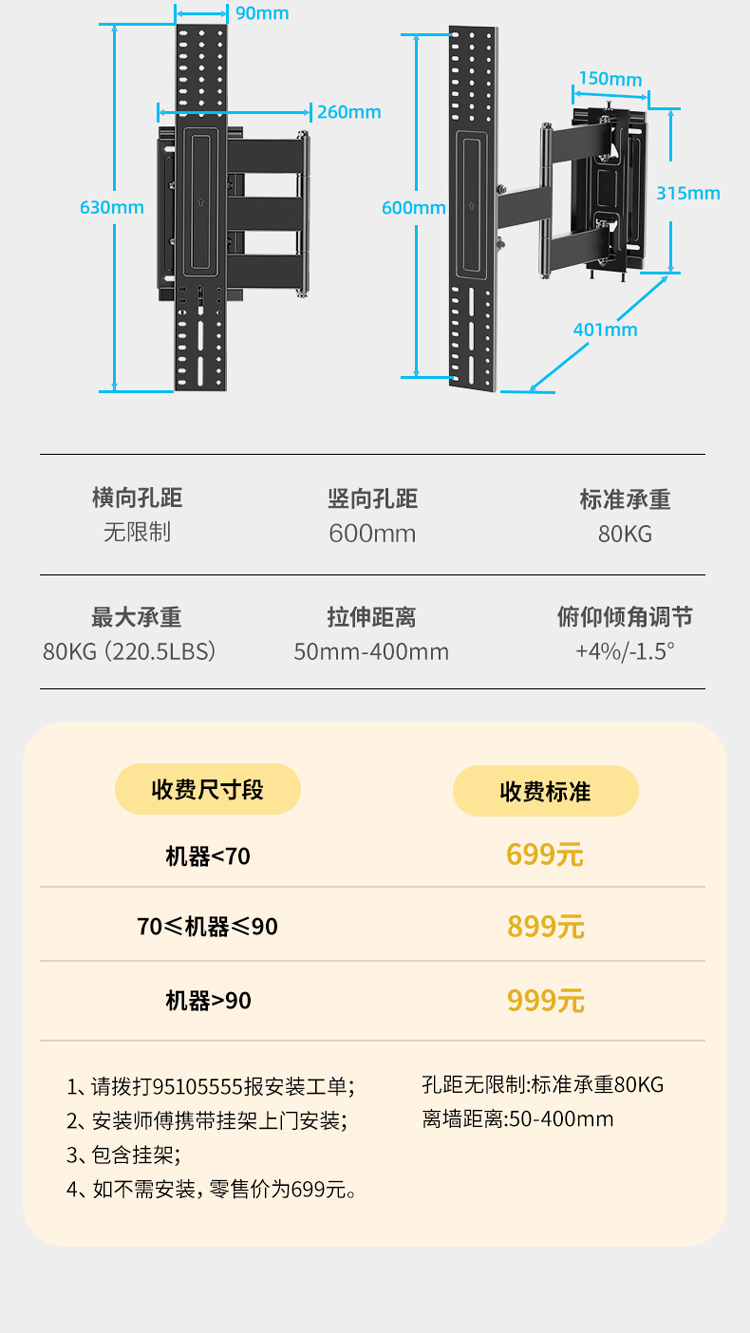 分体式伸缩挂架(壁纸专用)DGN-100F-BZ 适用电视尺寸70-90吋