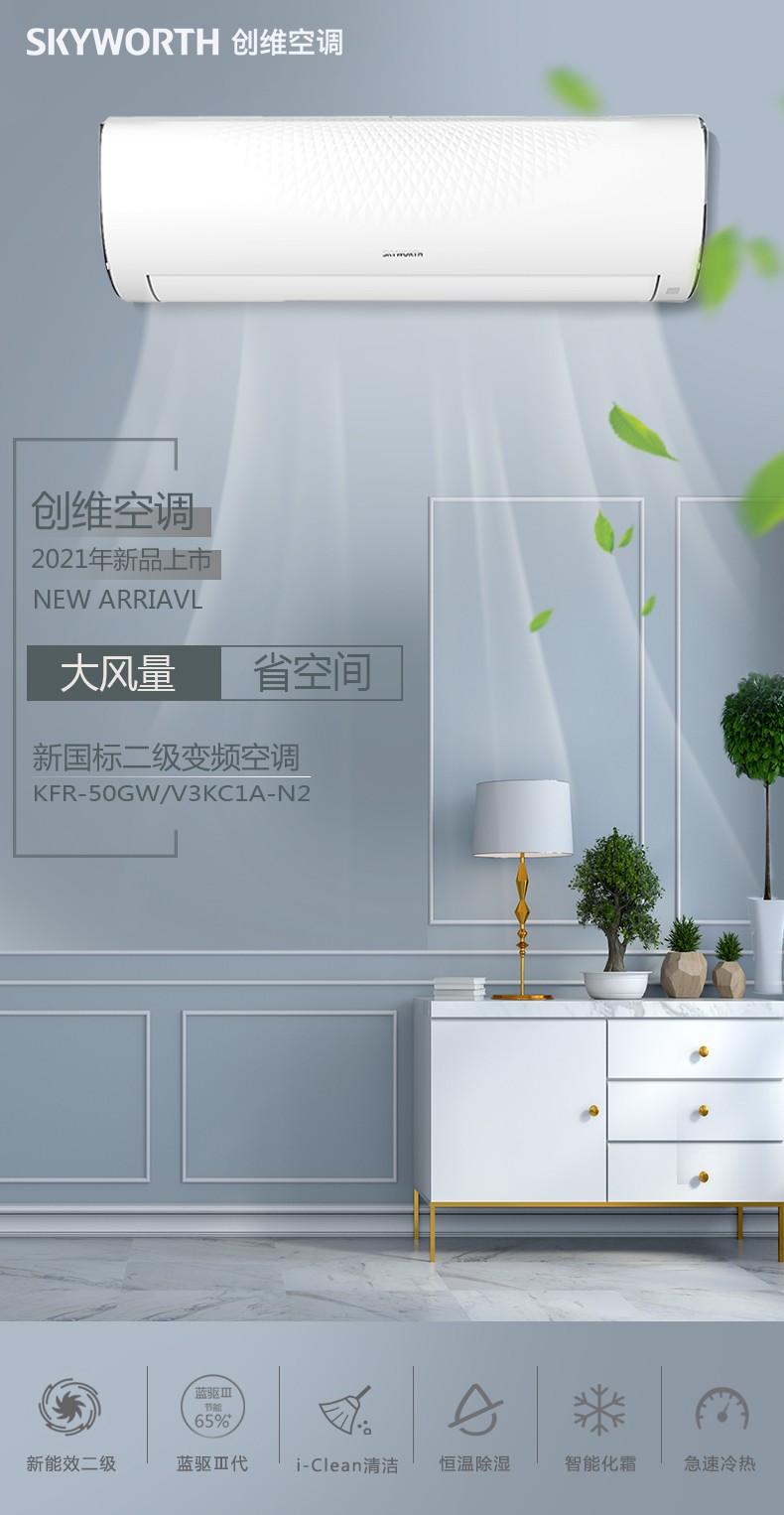 创维空调 2P 舒适风 变频冷暖 二级能效 KFR-50GW/V3KC1A-N2 【含结算卡】