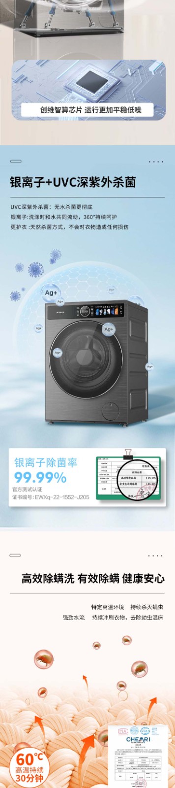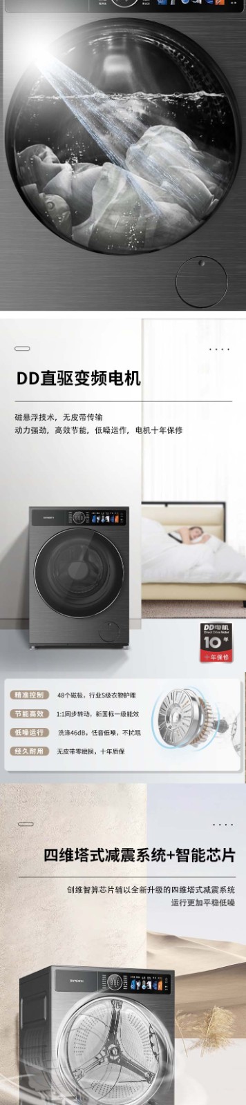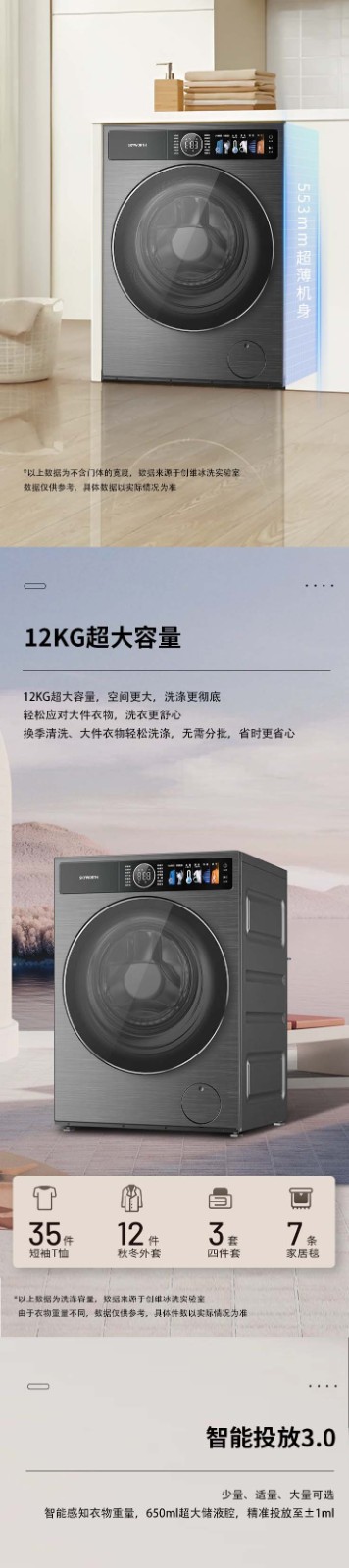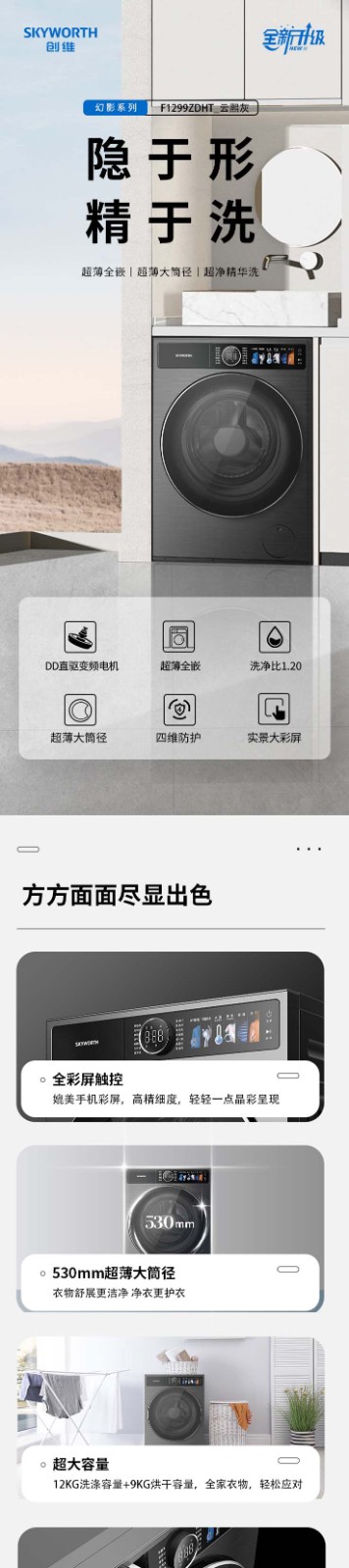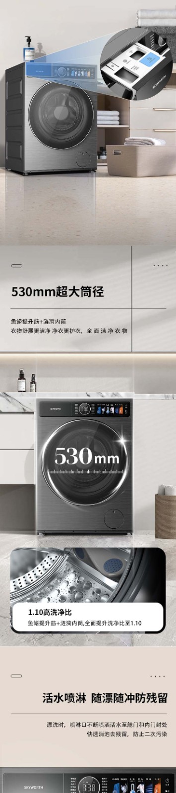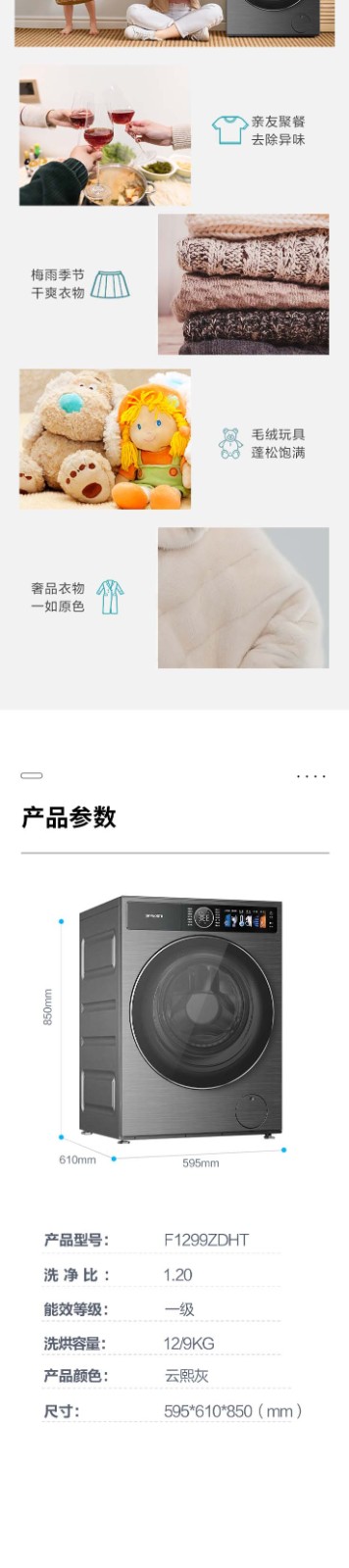 创维洗衣机 12KG洗烘一体 滚筒洗衣机 一级能效 F1299ZDHT_云熙灰 灰色