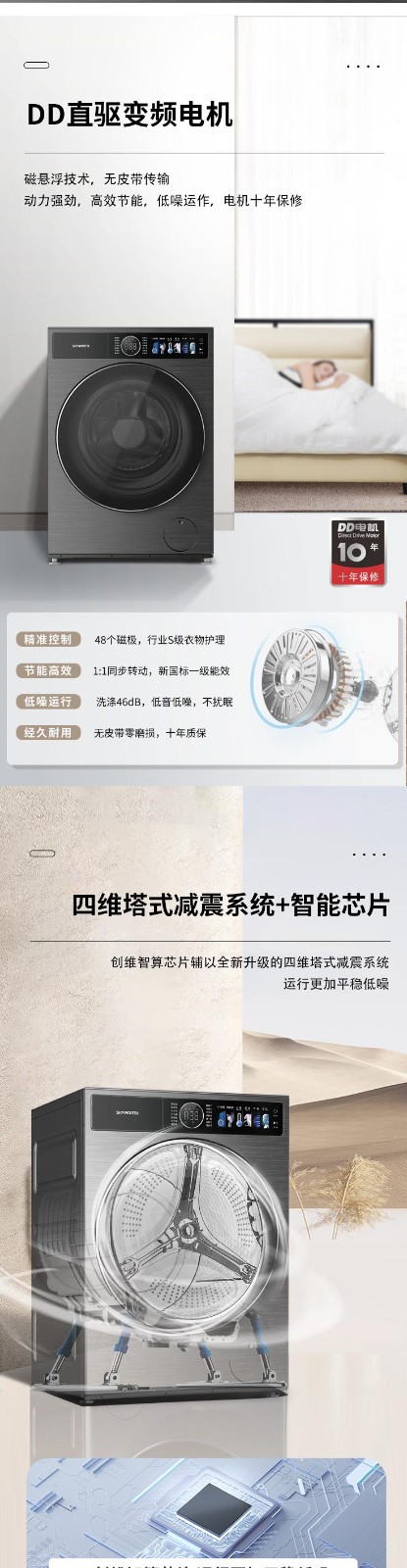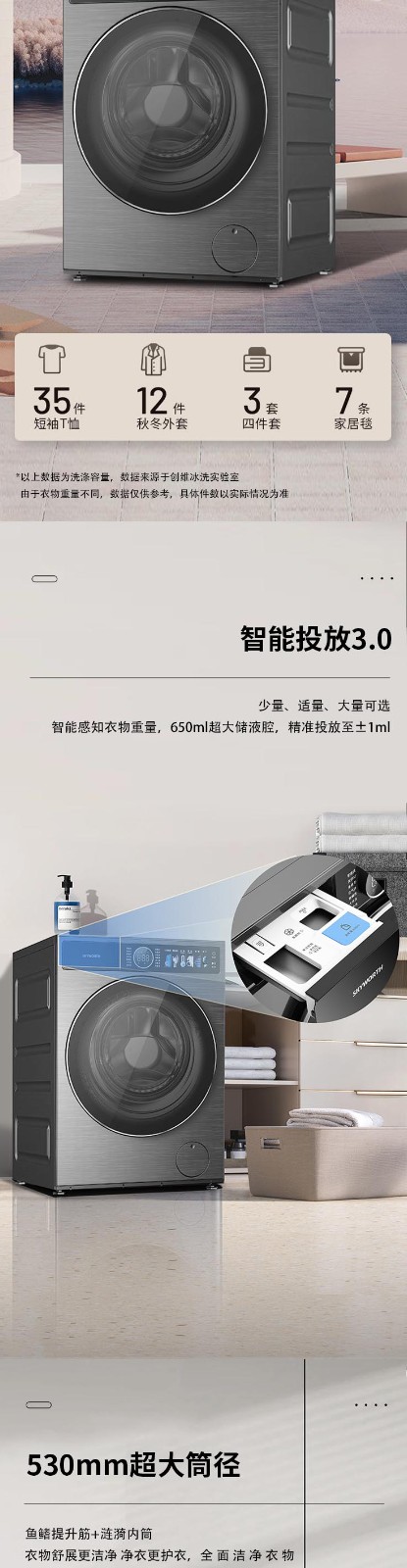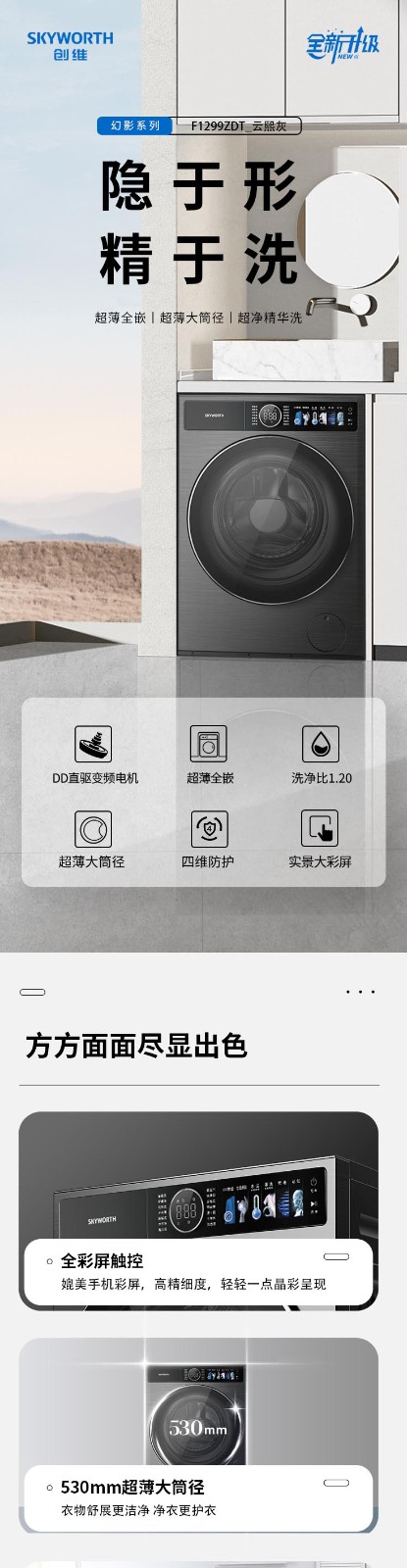 创维洗衣机 12KG 单洗滚筒洗衣机 一级能效F1299ZDT_云熙灰 灰色