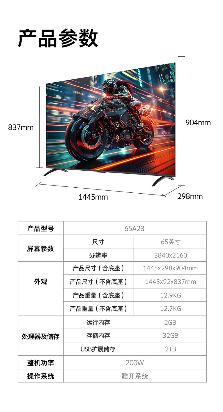 【预售 1月3日前发货】创维电视 65A23 144Hz疾速高刷4K 护眼防蓝光 65英寸