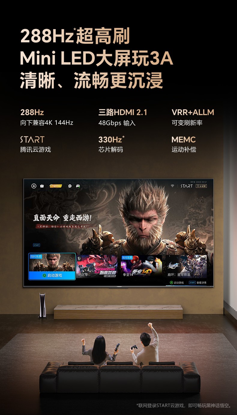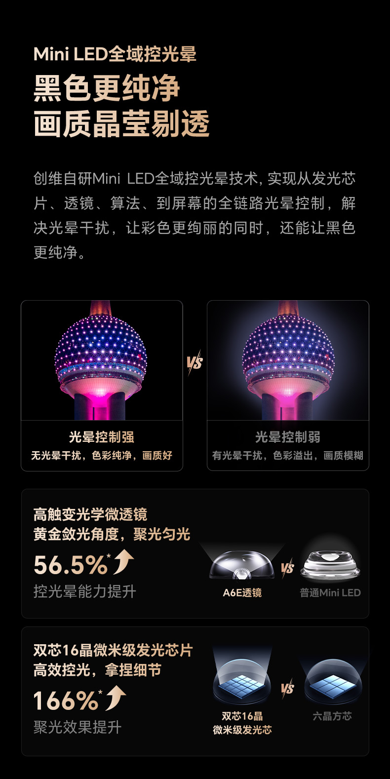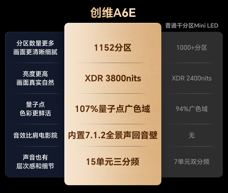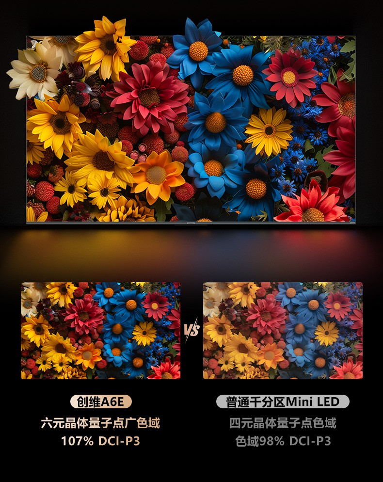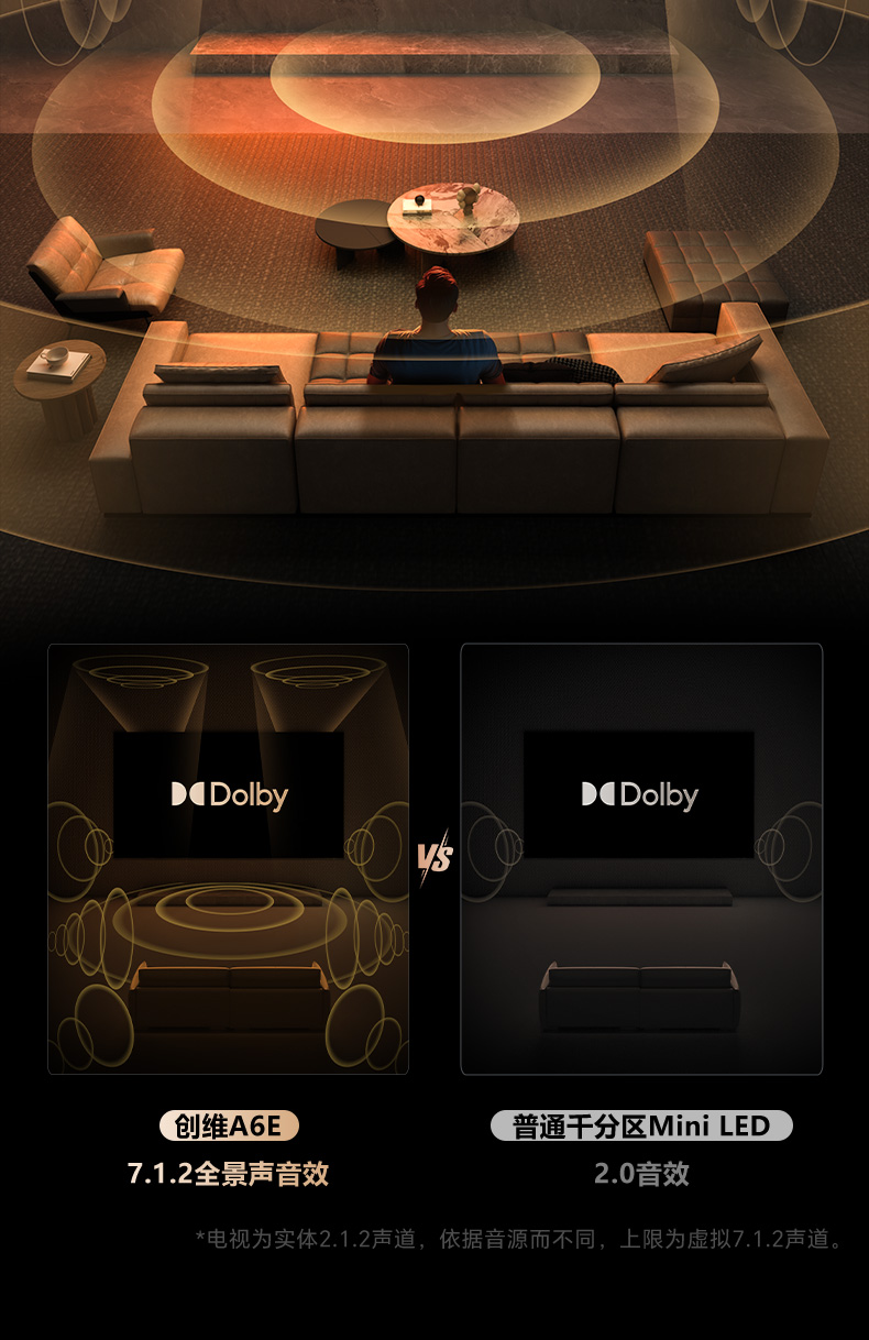 创维电视 65A6E MiniLED 内置回音壁 288Hz高刷 1152分区 4+64G 65英寸