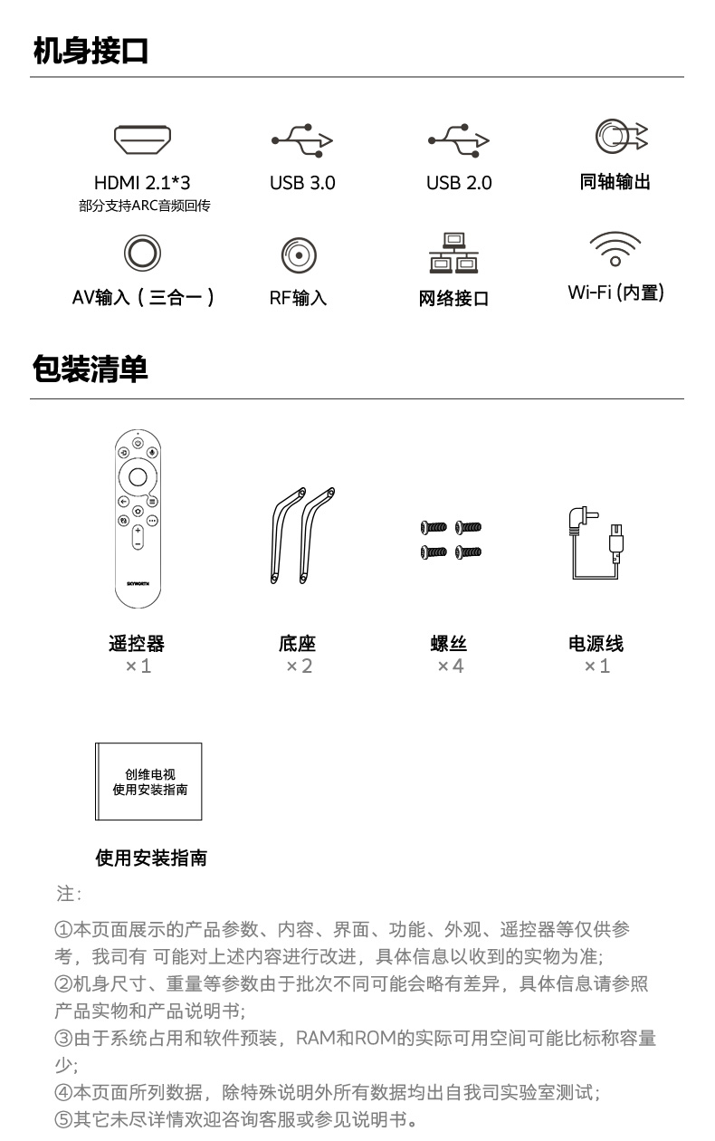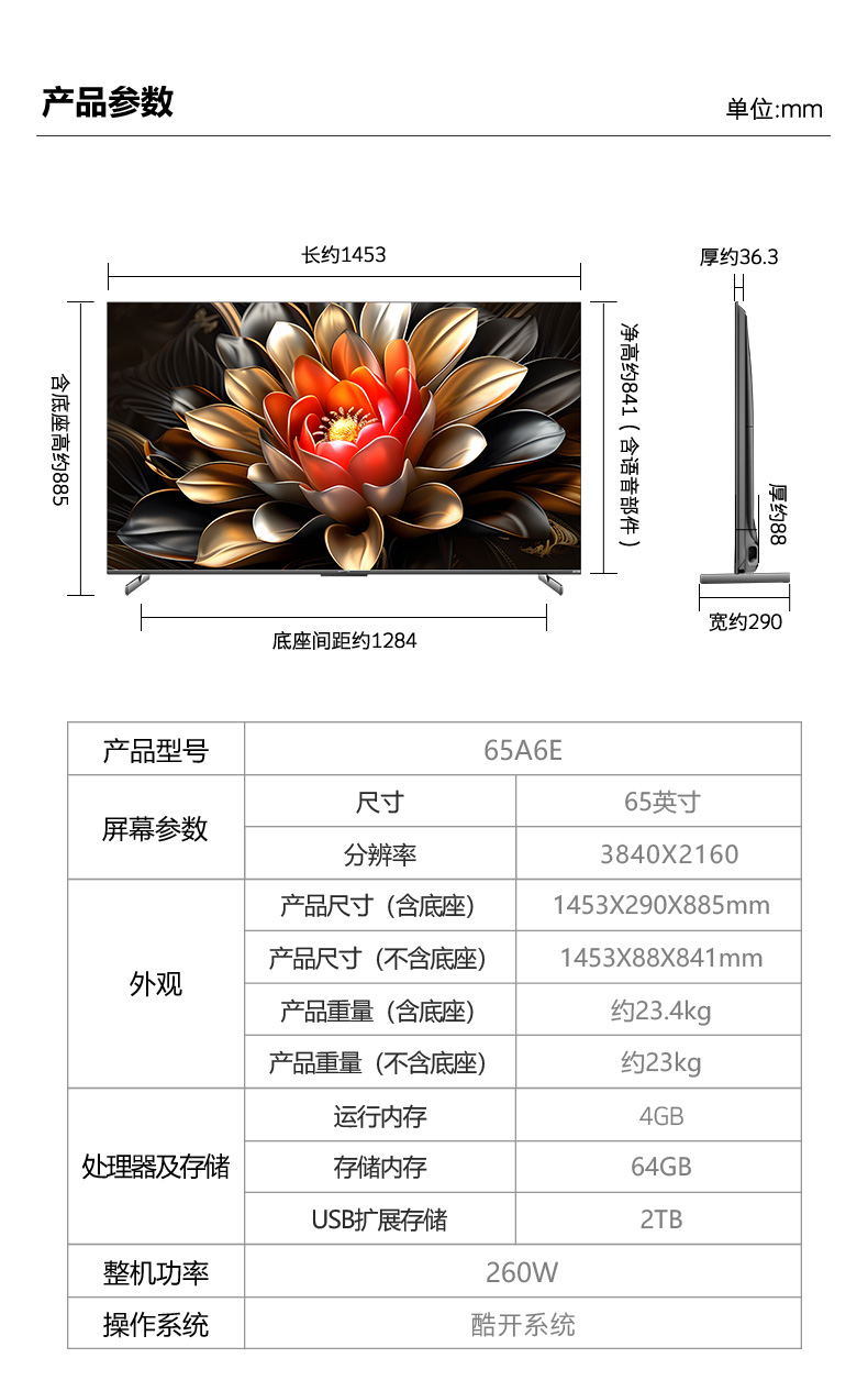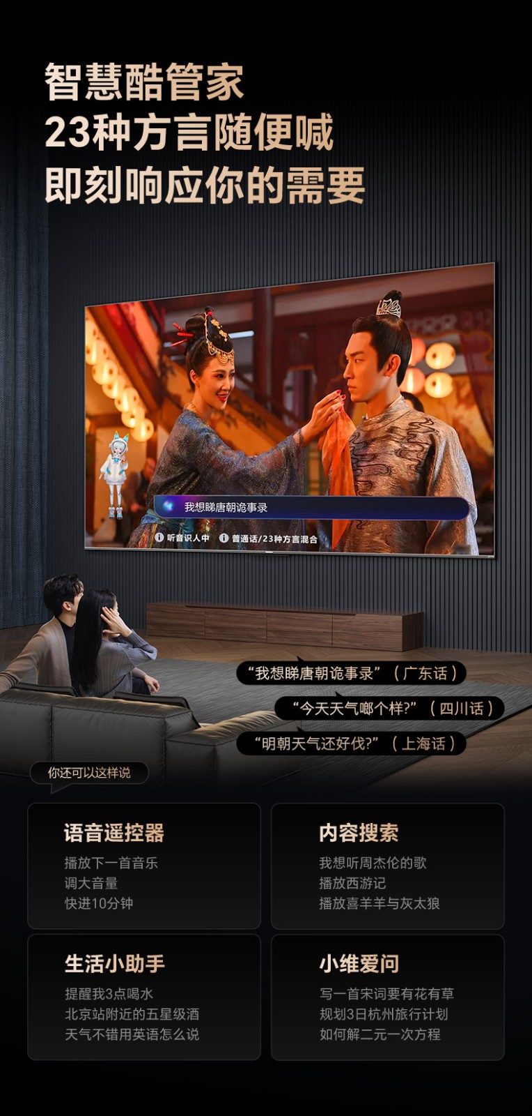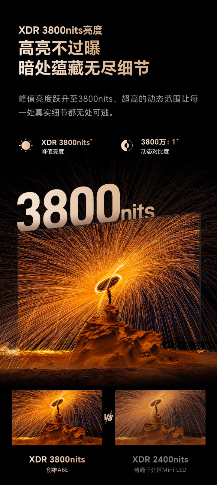 创维电视 65A6E MiniLED 内置回音壁 288Hz高刷 1152分区 4+64G 65英寸