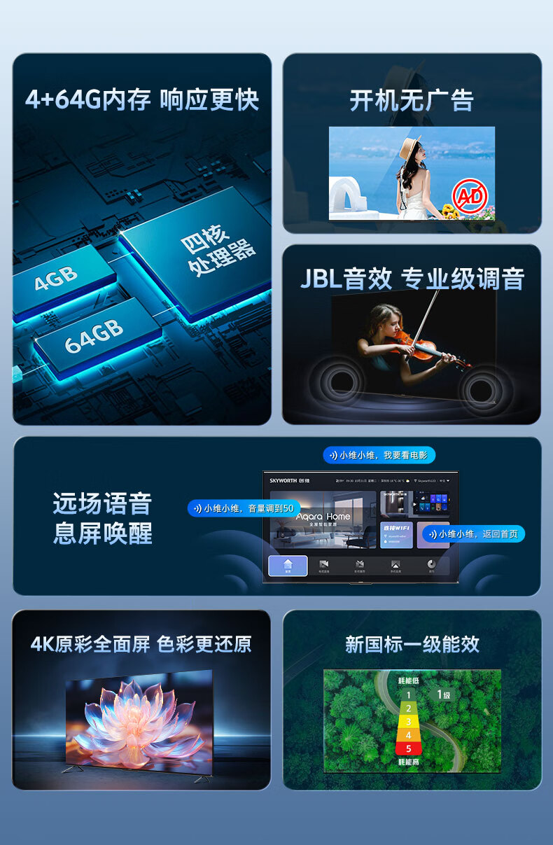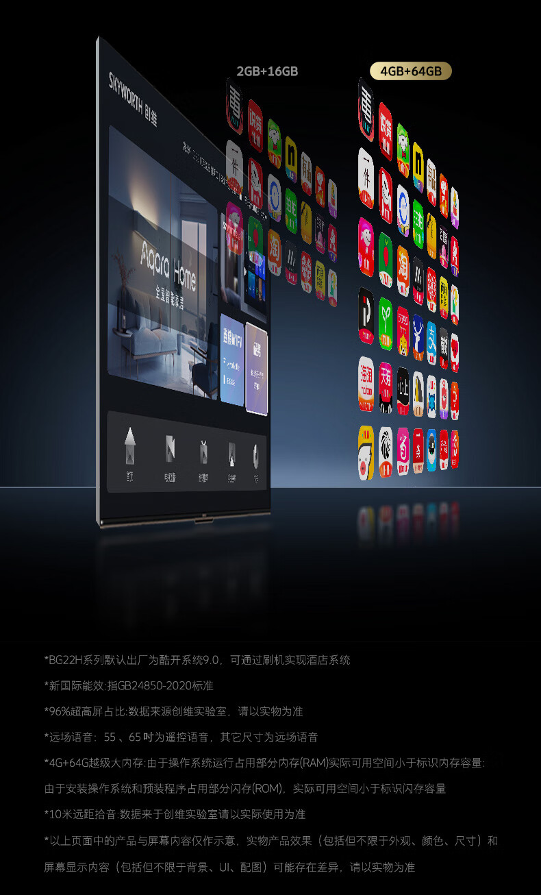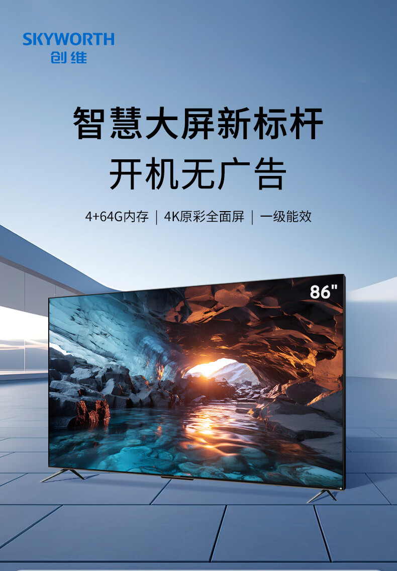 创维电视 86BG22H 4K全面屏 120Hz高刷 远场语音 4+64G 商用款 86英寸
