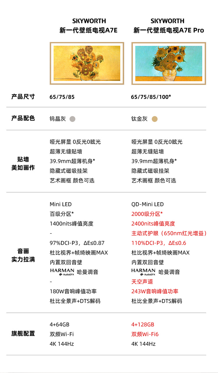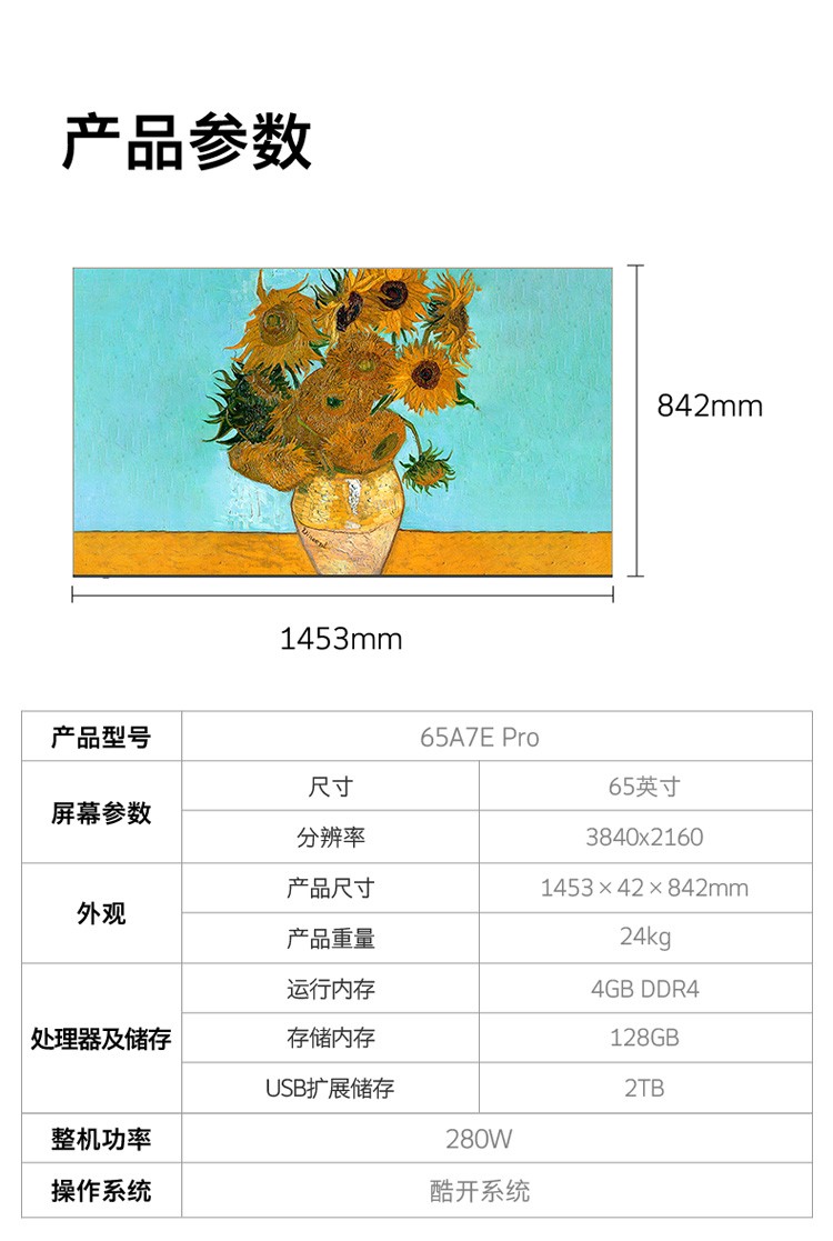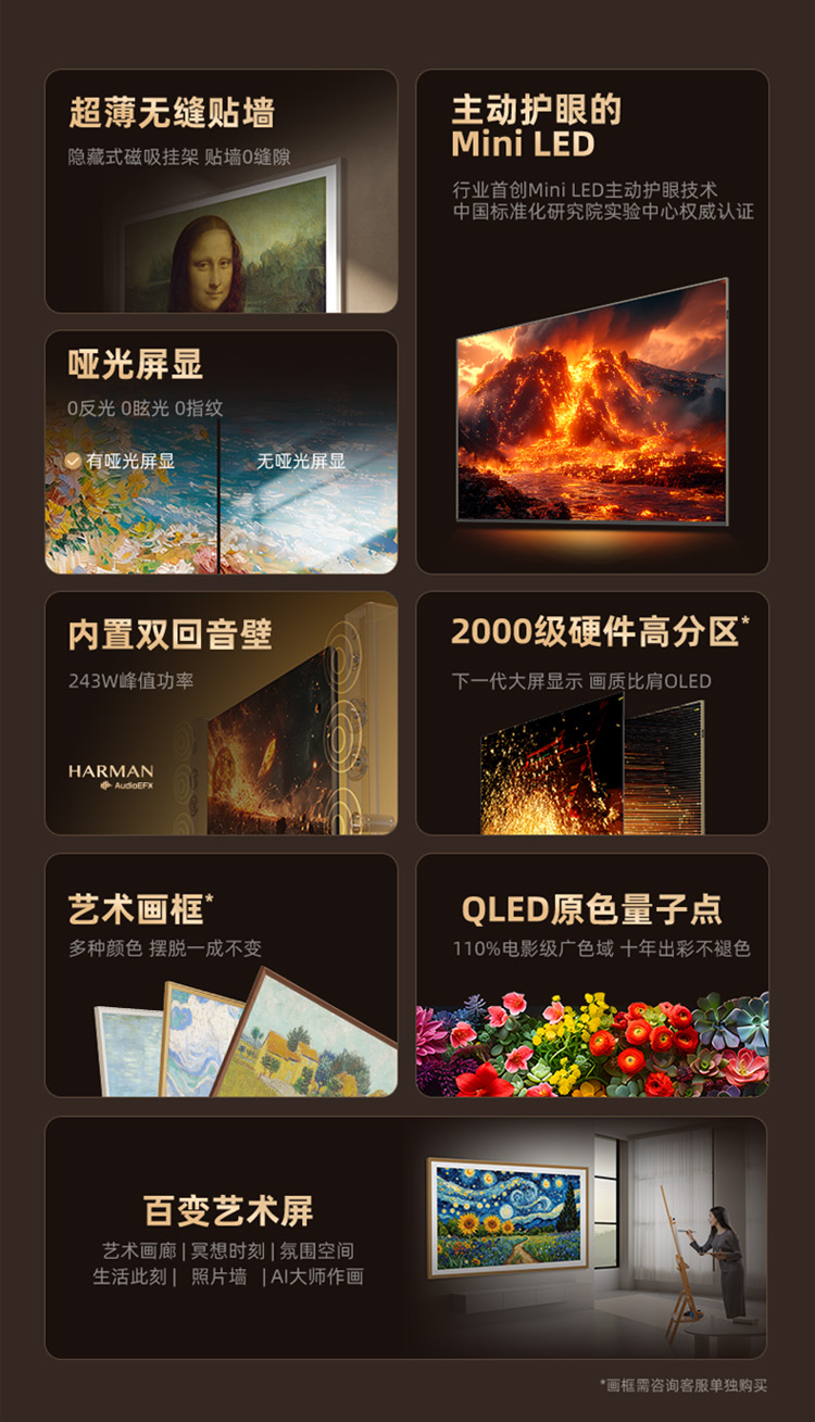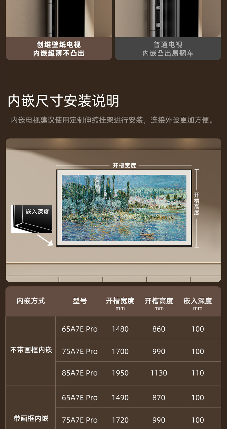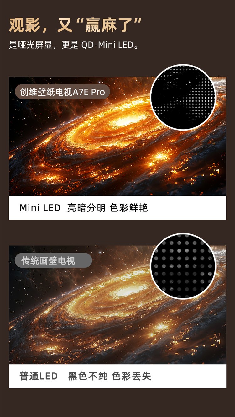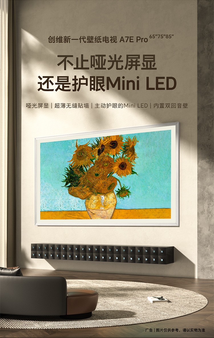 创维壁纸电视 65A7E Pro 超薄壁画 主动护眼的MiniLED 哑光屏显 65英寸