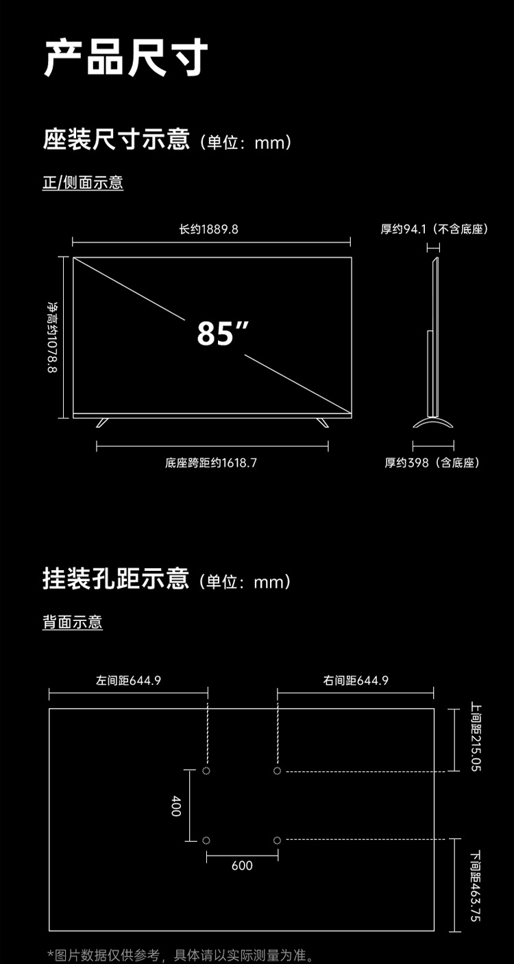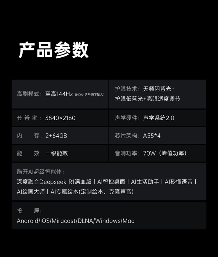 酷开电视 85P3F 4K大内存网络智能投屏电视 K3 85英寸